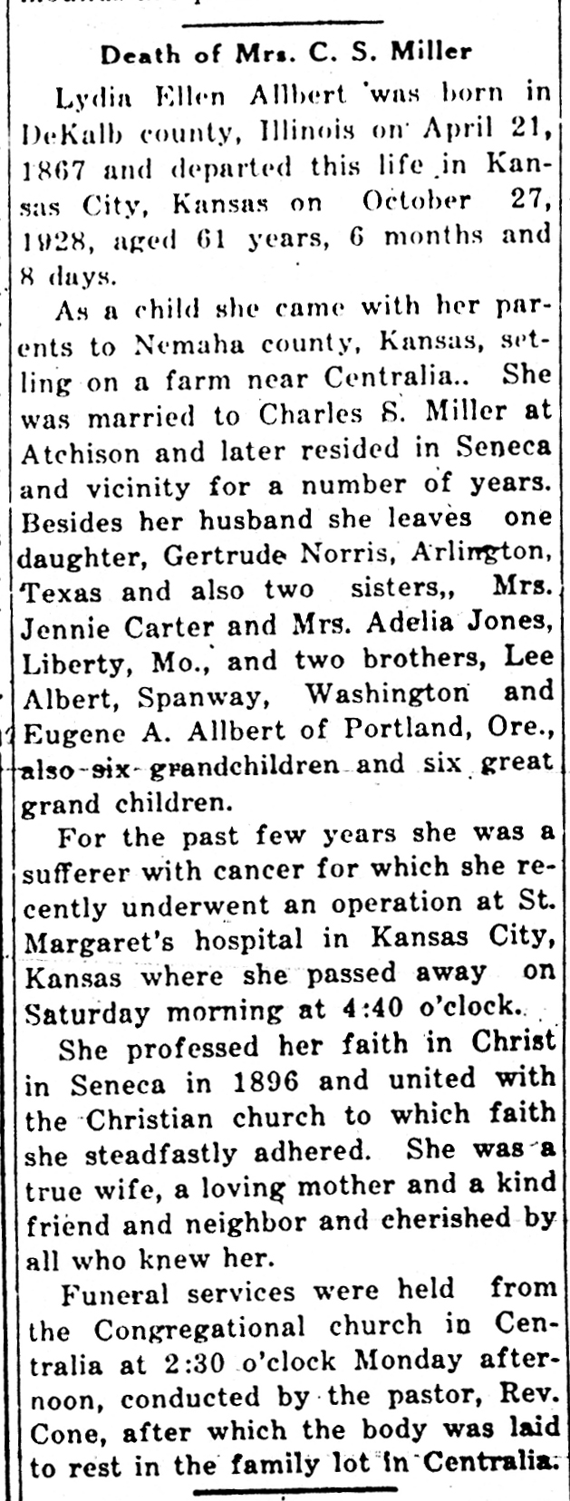 Union County, Ohio; b. 22 Mar 1829, Bristol, Ohio; d. 24 Mar
