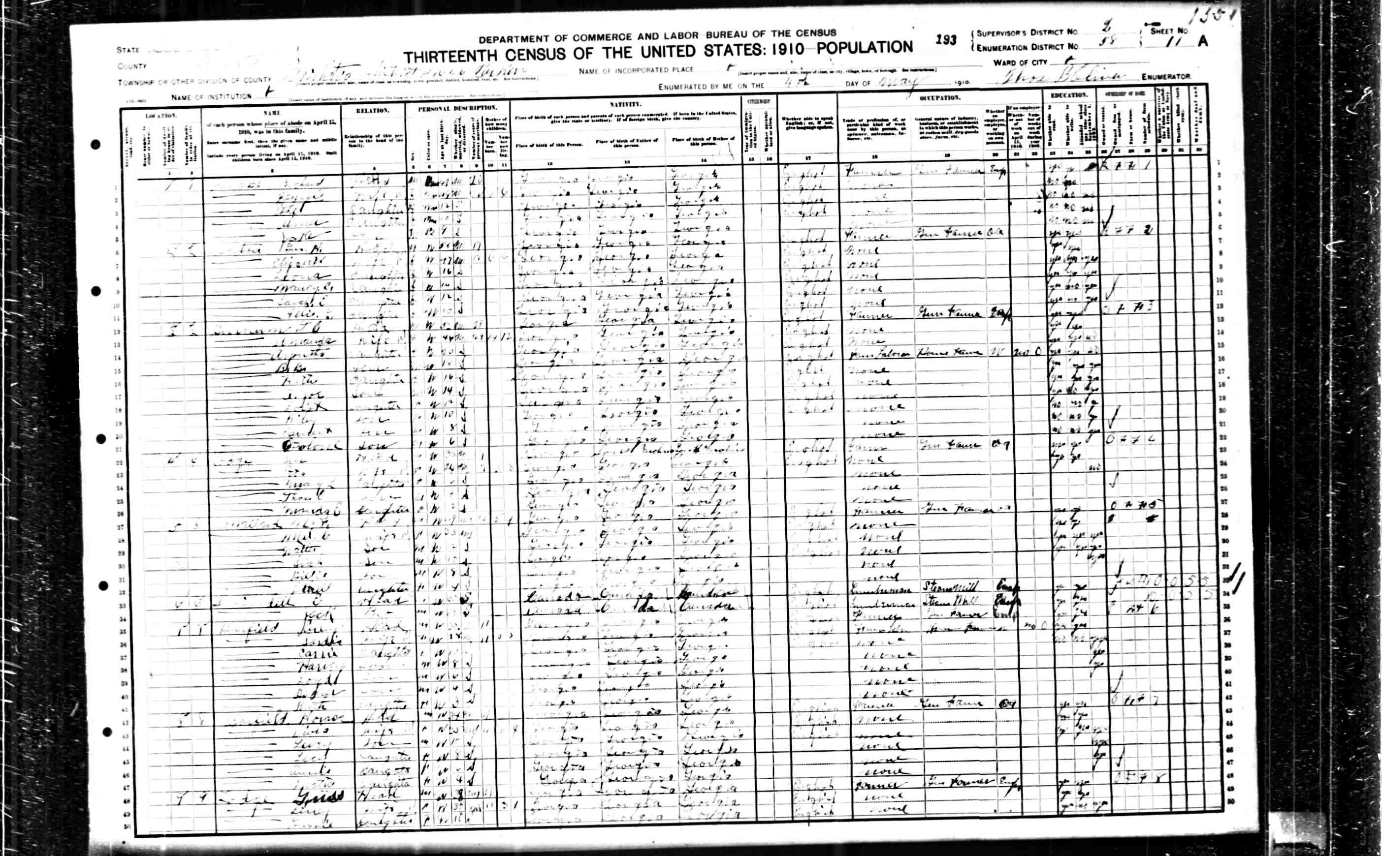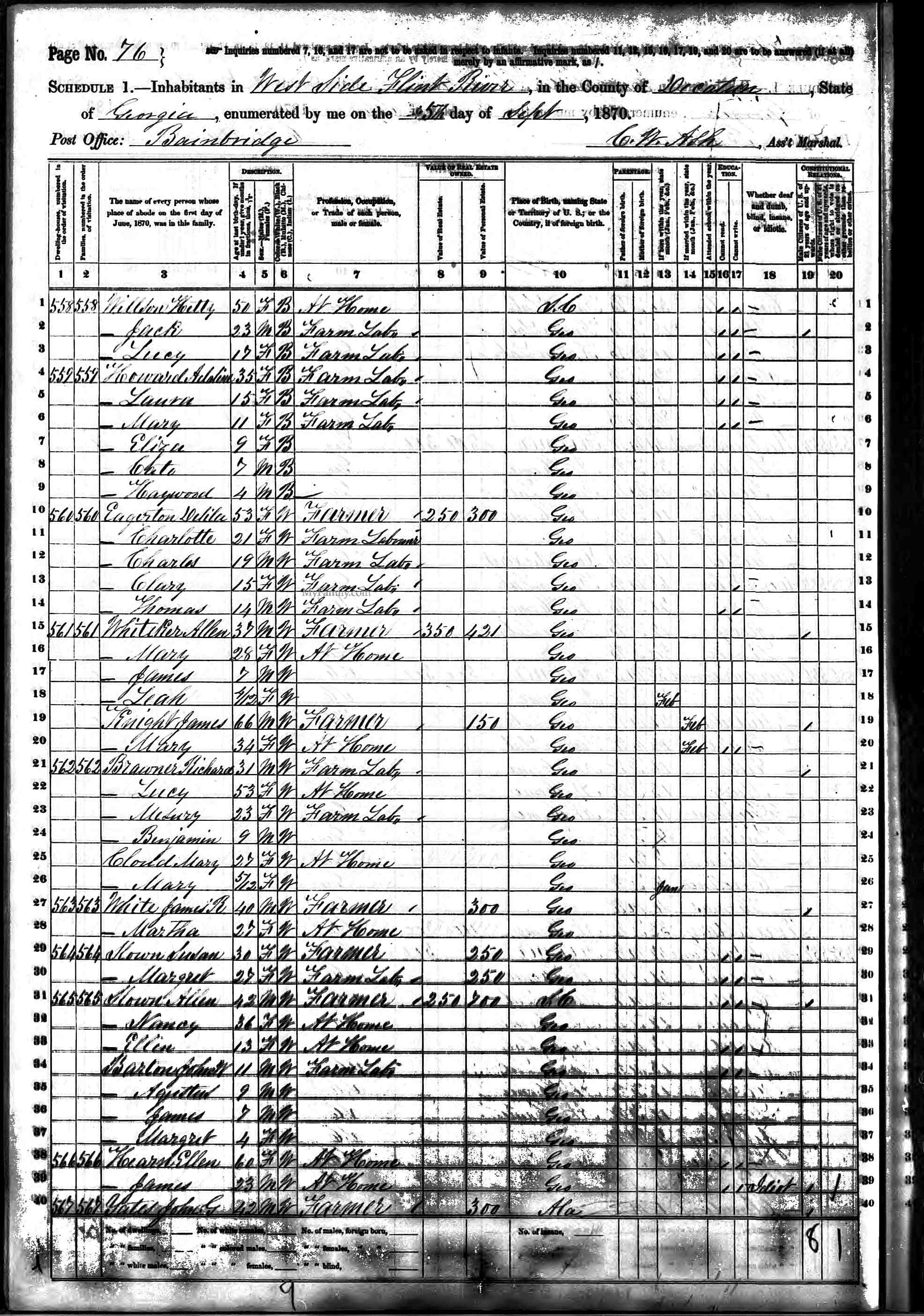 4. vi. JAMES H BARTON, b. Abt. 1864, Georgia.