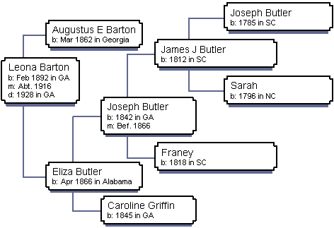 was born Apr 1866 in Alabama. She married AUGUSTUS E BARTON, son of