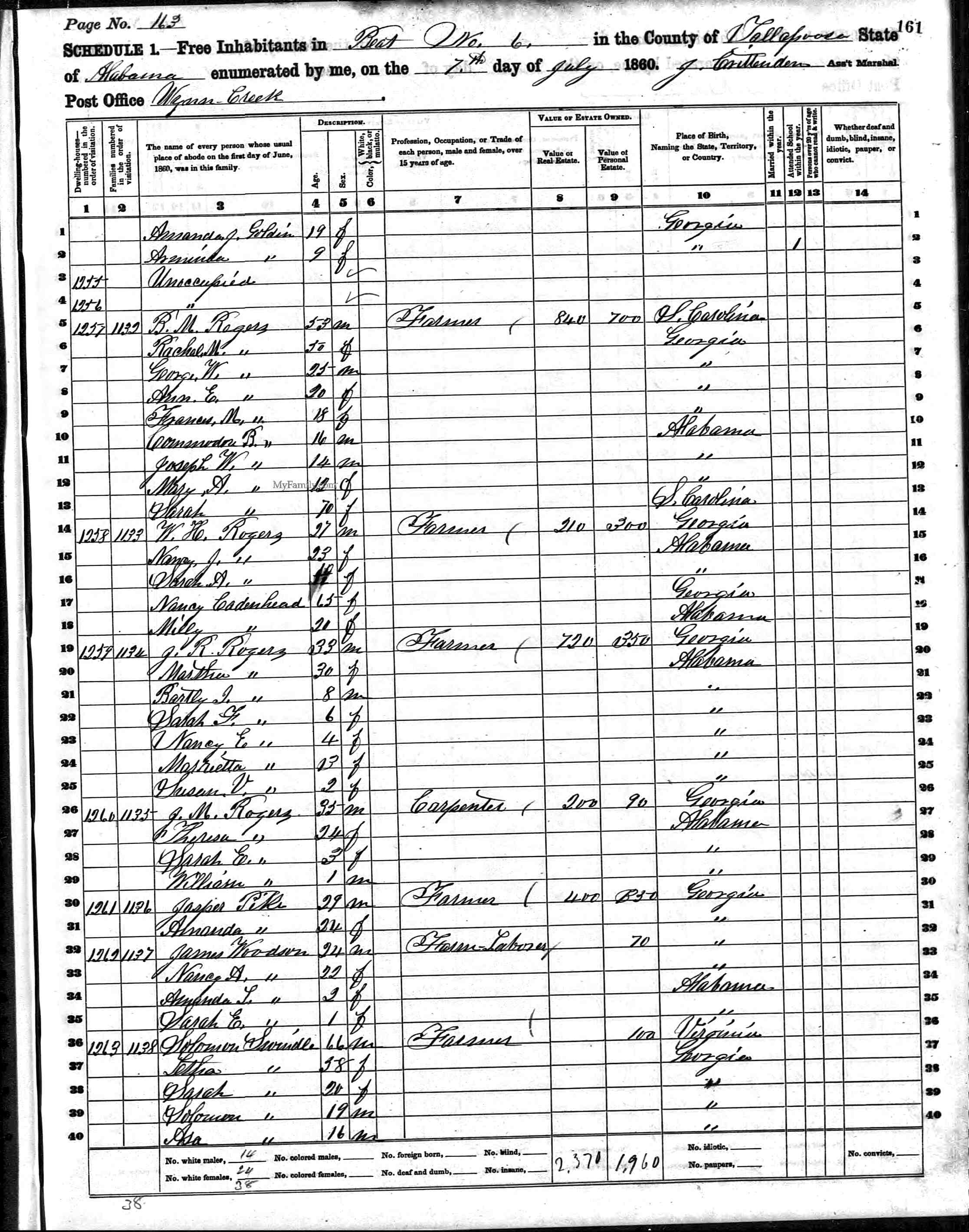 vi. BENJAMIN P SWINDLE, b. 03 Aug 1837, Madison, Georgia;