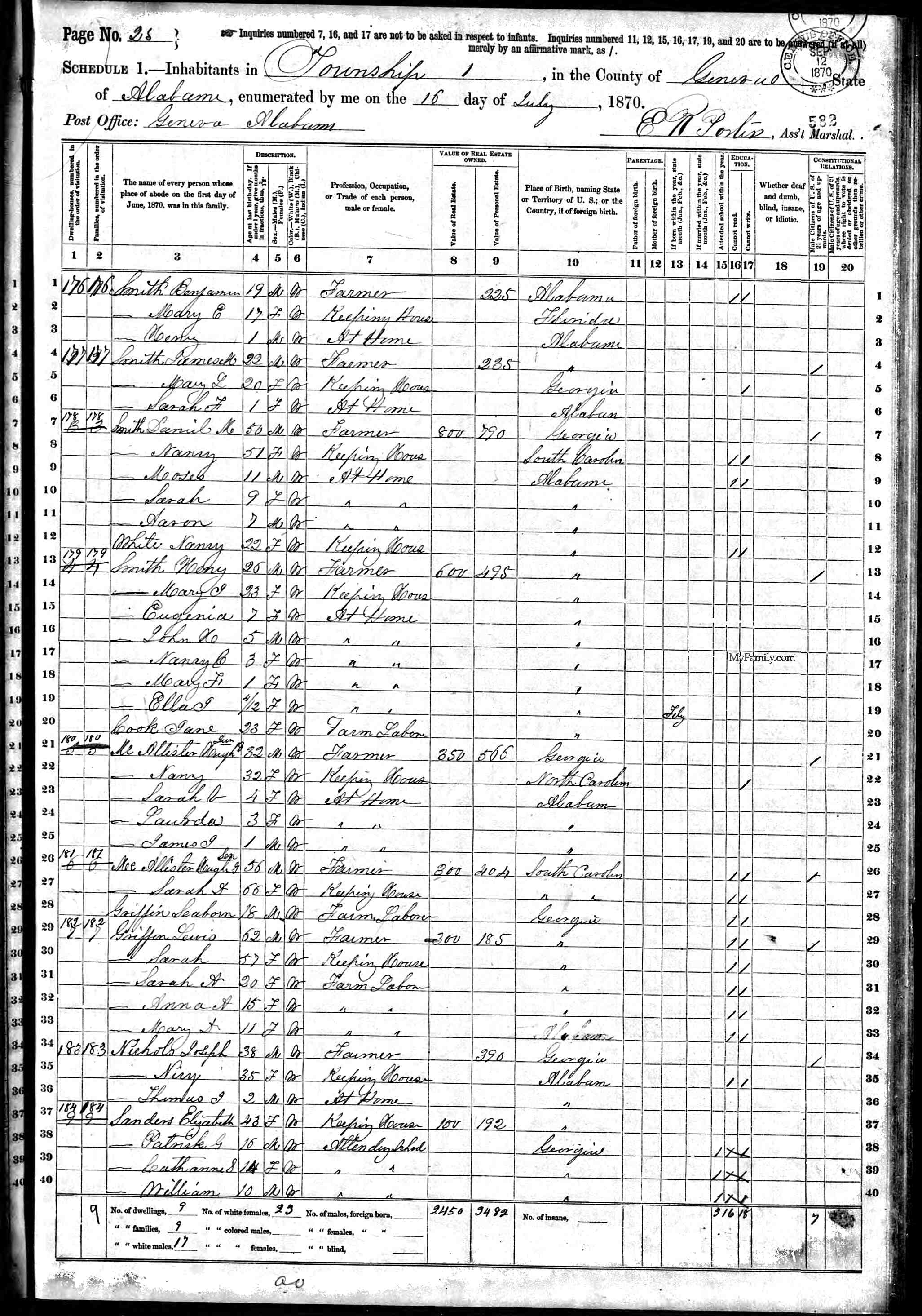 4) Sally Butler, daughter, white female age 10, at home, born in AL