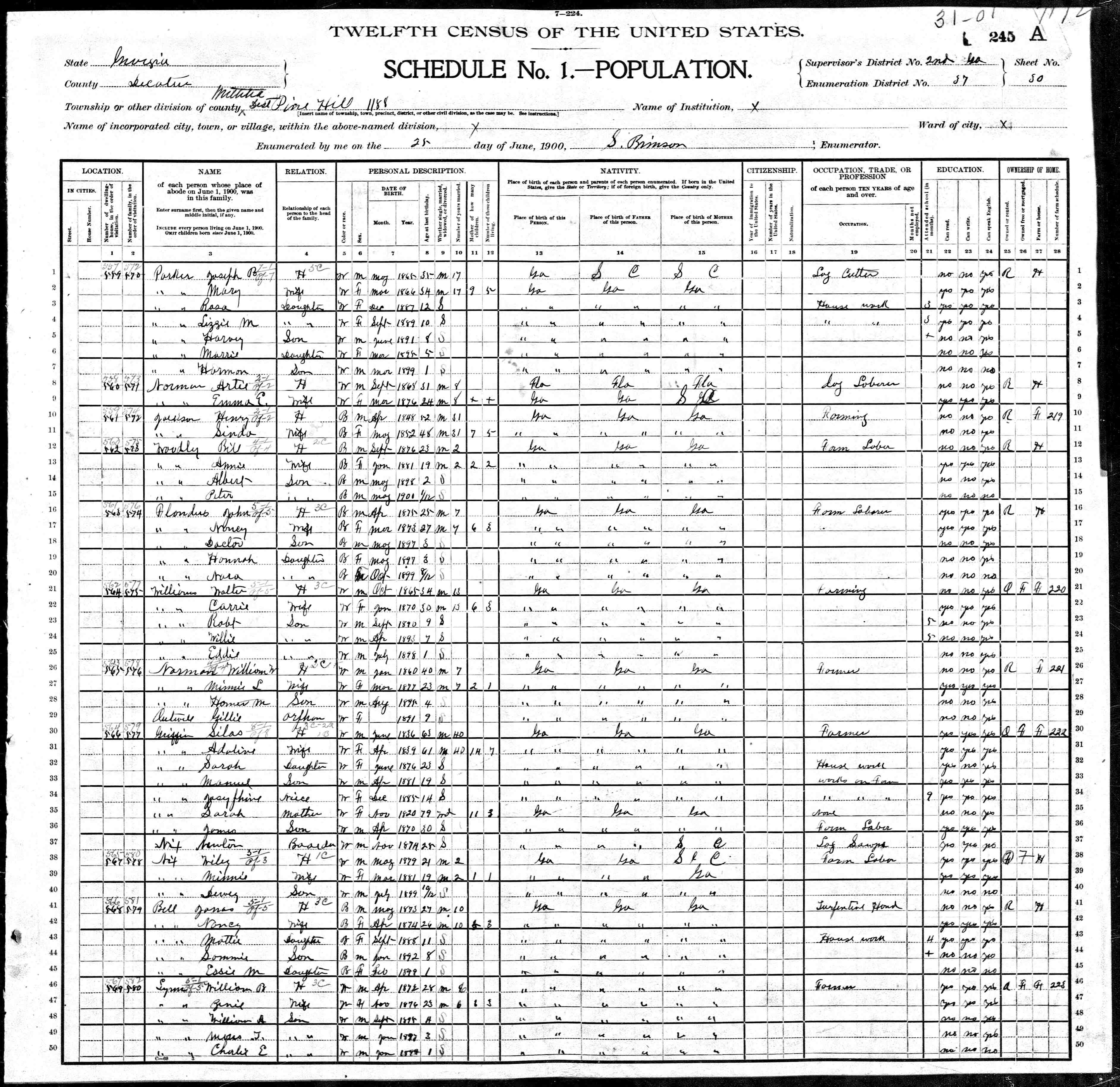 ?1) Joe Butler, head, white male age age 37, farm laborer, born in
