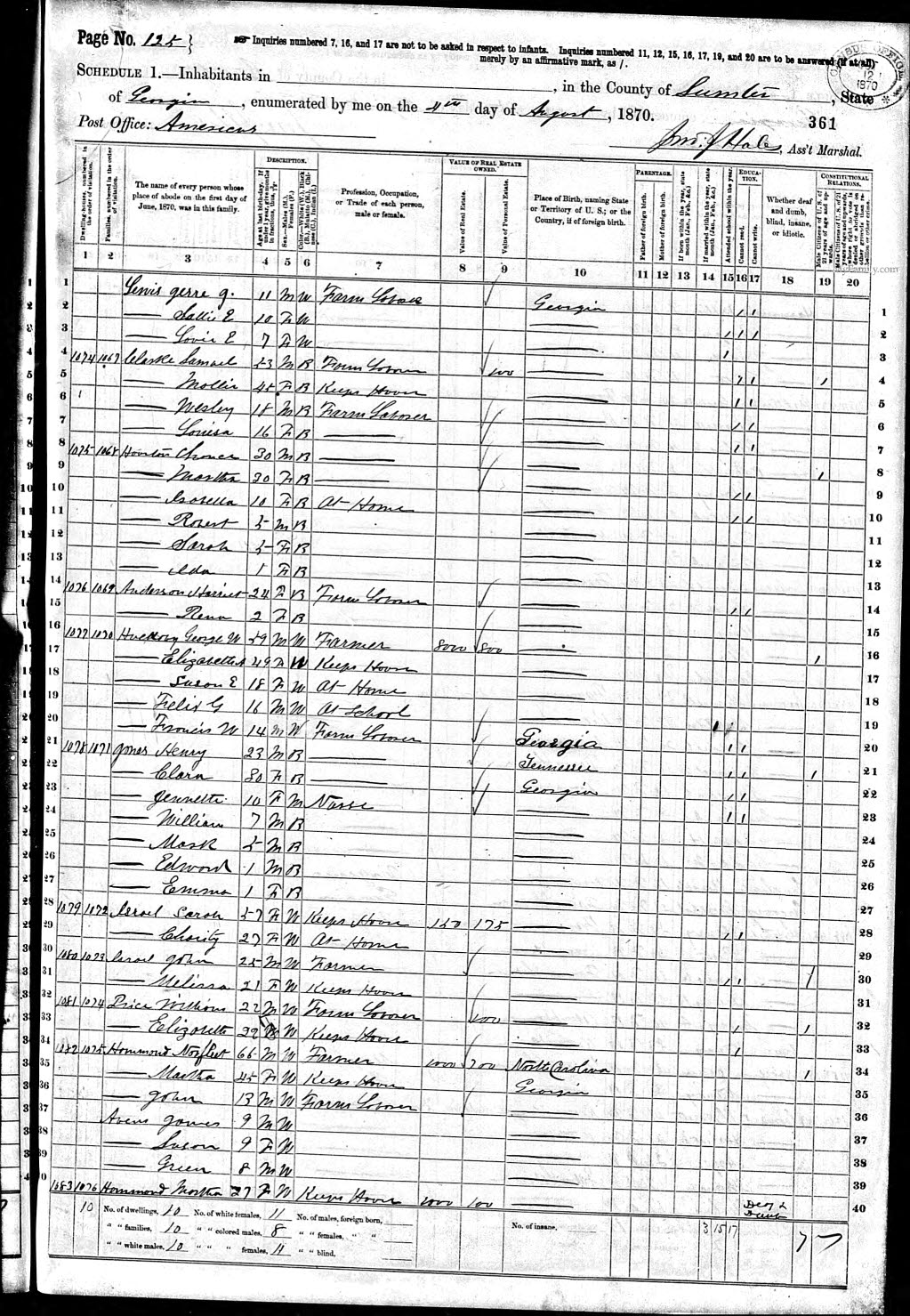 1838, Sumter, GA; d. 28 Jul 1870, Sumter, GA.