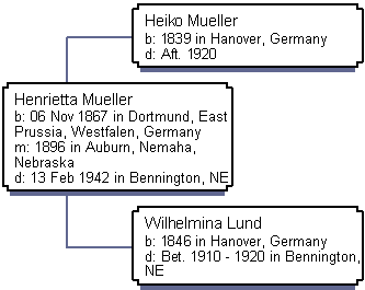 married HENRIETTA MUELLER 1896 in Kansas. She was born 06 Nov 1867 in