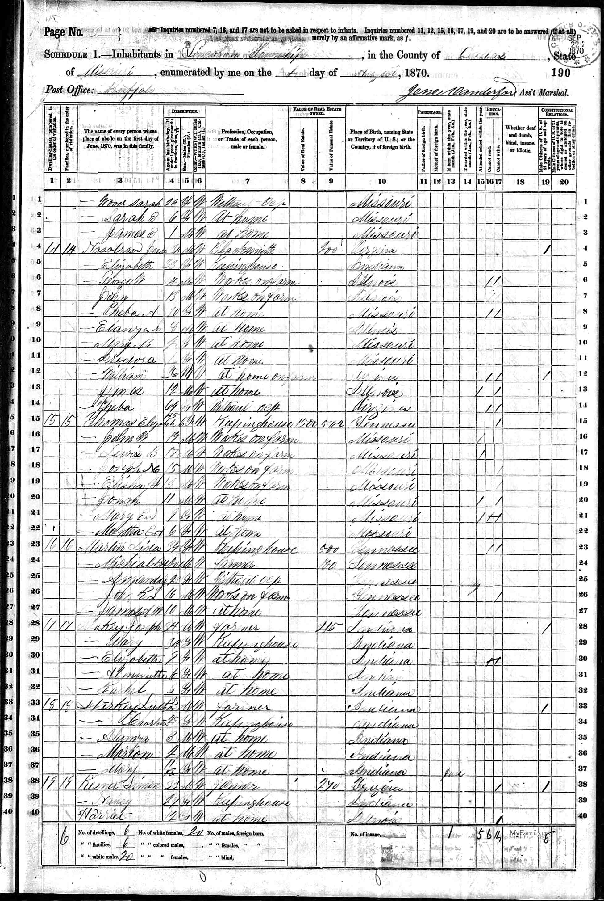 his family. Job moved his family to Dallas County in 1868. |