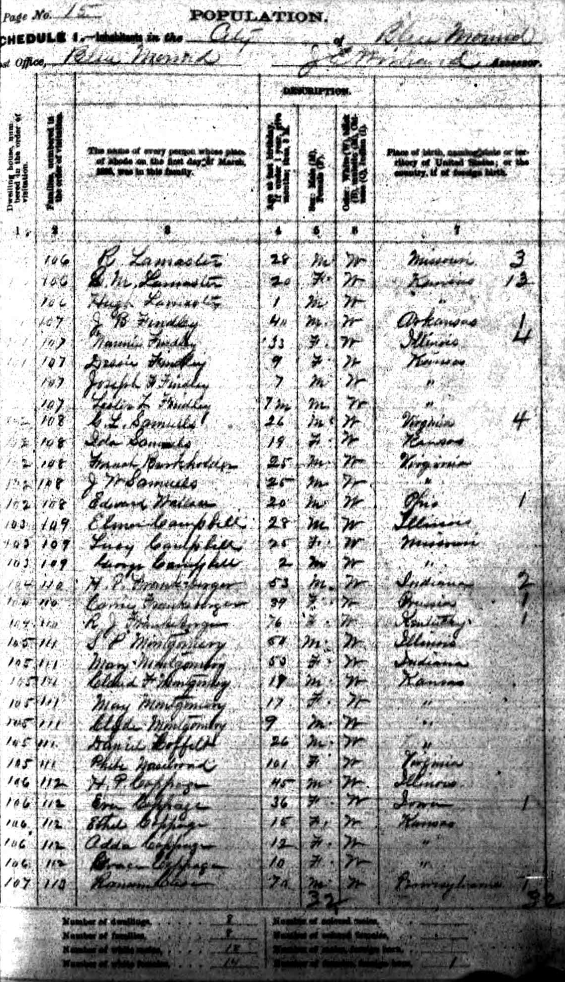 James and Laura with kids in a special 1895 Census in Linn Co, KS