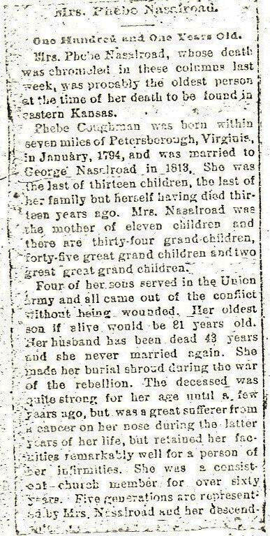 * - Phebe (Coffman) Neselroad is living with them