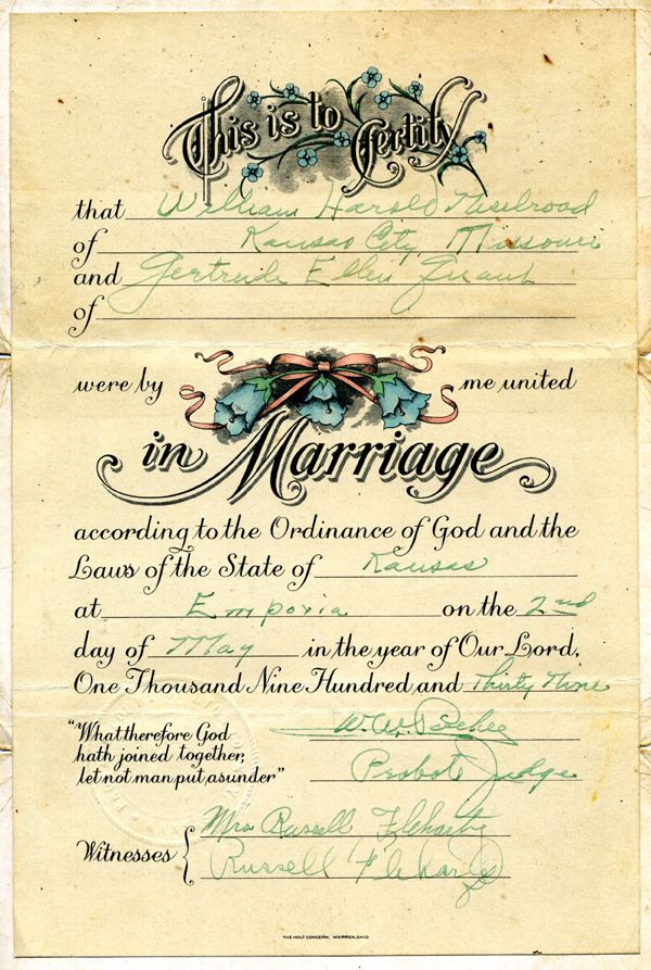 Marriage to Ollie May Williams.
