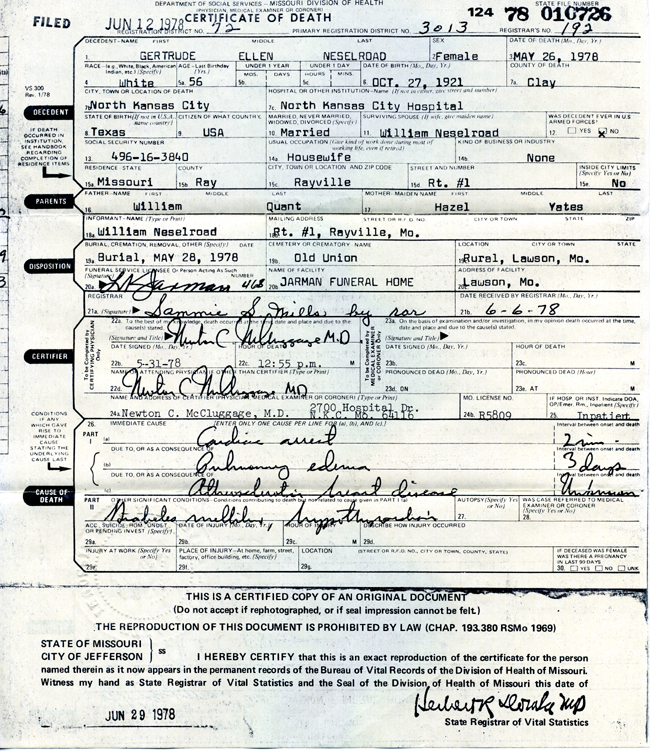 B:Jul 1917 in MO D:Aug 1998 in MO |