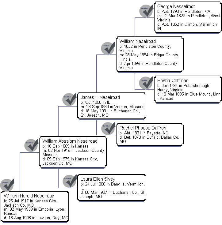 Tree starting with William Harold Neselroad (Gina's Grandfather)