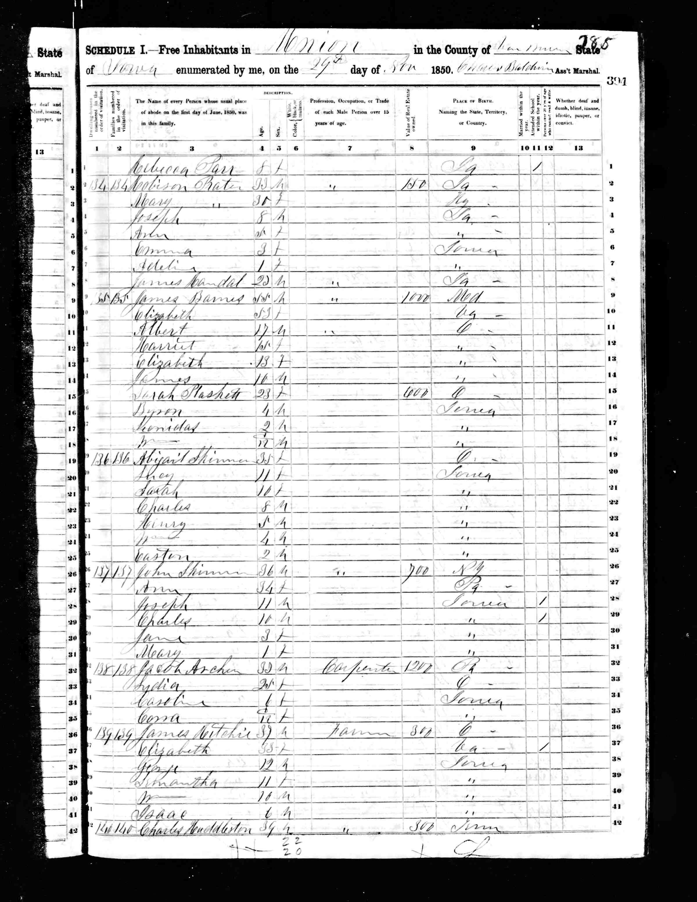 On 12 Nov 1840 when Charles D was 24, he married Nancy Barnes, F in Van Buren, IA. Born on 26 Jul 1821 in Holmes Co., OH.