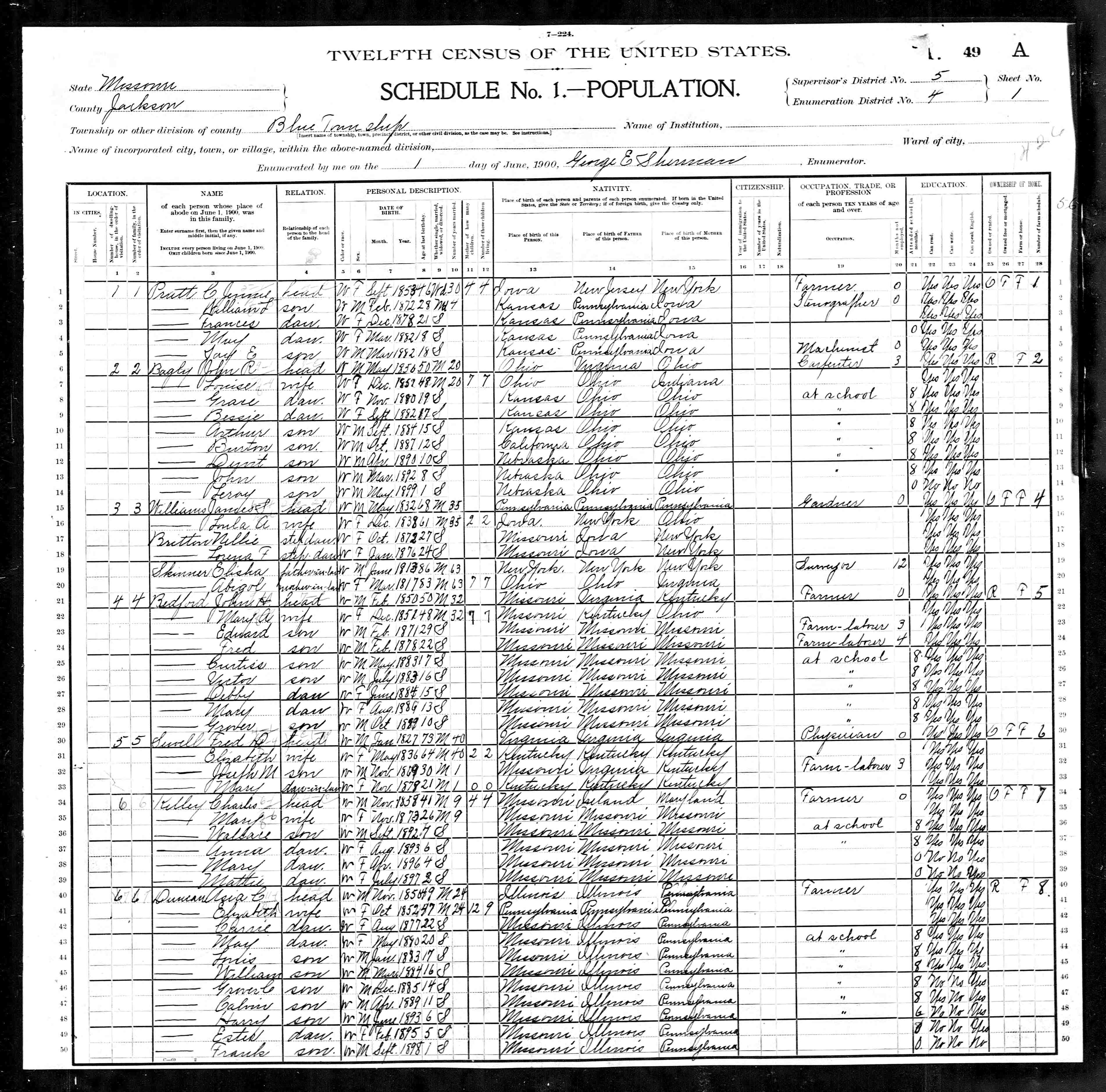 Elisha D married Minnie F ?, F. Born abt 1873 in MO.