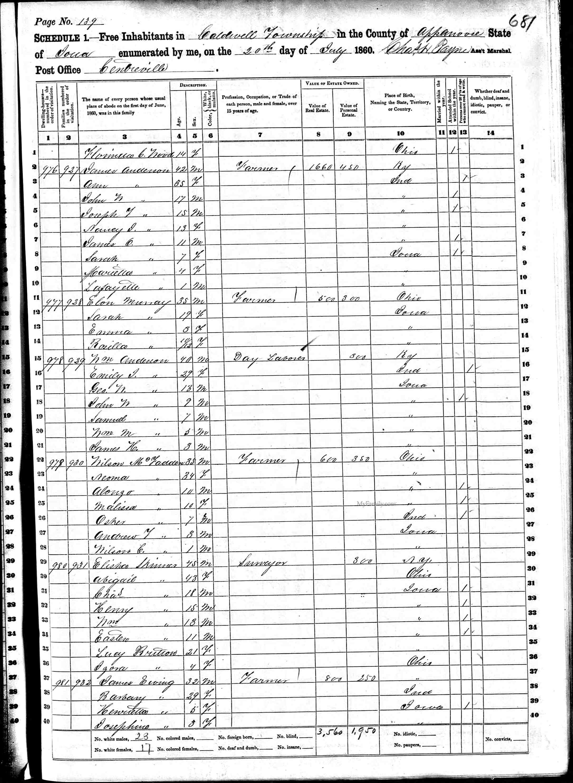 28. Elisha D Skinner, M. Born on 26 Mar 1871 in Iowa.