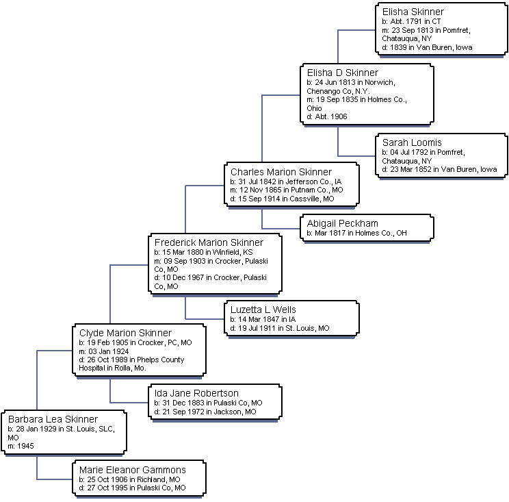 38. Barbara Lea Skinner, F. Born on 28 Jan 1929 in St. Louis, SLC, MO.