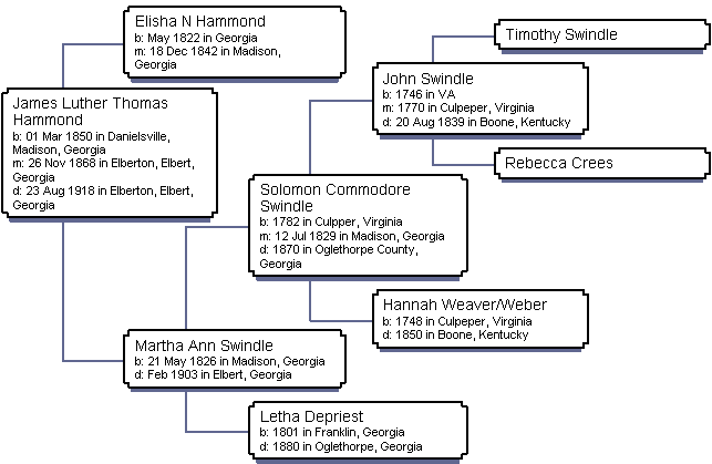 3. i. SOLOMON COMMODORE3 SWINDLE, b. 1782, Culpper, Virginia; d. 1870, Oglethorpe County, Georgia.